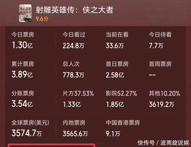 另一部口碑和票房均崩盘的电影,是由肖战主演的《射雕英杰传:侠之大者》,由于存在多数粉丝刷高分和多数黑粉刷低分的嫌疑,这部电影于今莫得给出豆瓣评分。而它的瞻望总票房,从最高时的超10亿,降到了当前的7.6亿。