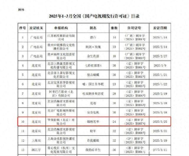 4月15日,据中新娱乐讯息,据国度播送电视总局办公厅对于2025年第一季度天下国产电视剧刊行许可情况的晓谕九游会·(j9)官方网站,《锦绣青春》已于2025年4月14日致密过审并赢得刊行许可证。