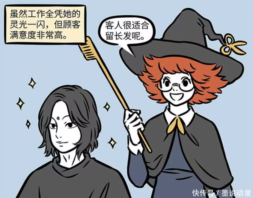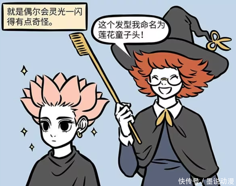 《非东谈主哉》漫画版中,时时出现的剪发师是托尼,不外有个更犀利的剪发师,她是又名女巫,还会把柄我方的思法去给顾主换发型。杨戬和不雅音换发型之后,他们齐很舒坦。女巫给哪吒换了莲花稚子头,不错看出他很可爱。即是同业托尼老诚,也被女巫超强的染发技能所遵照。