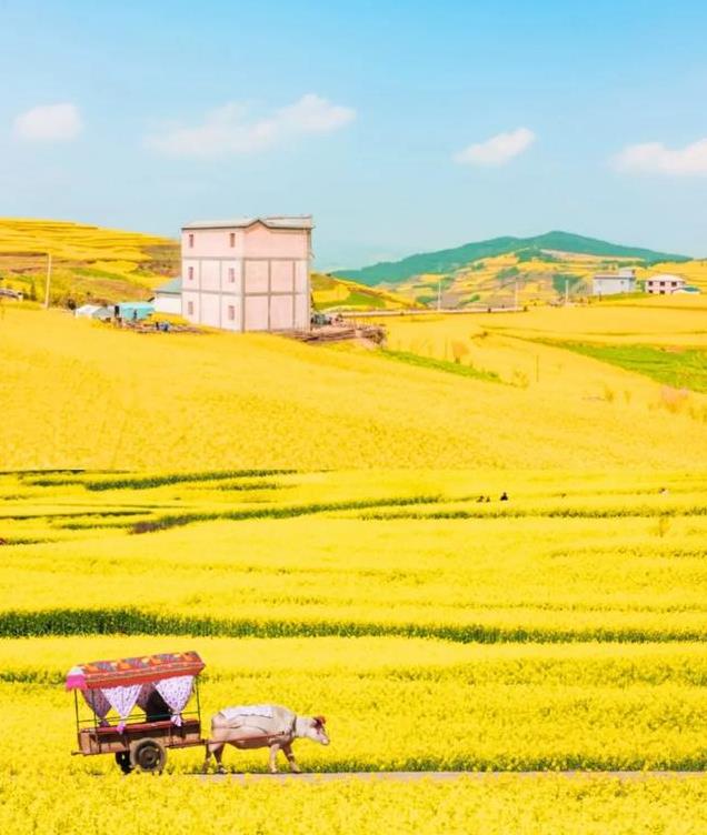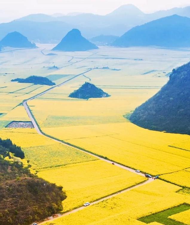1. 金鸡峰丛:罗平油菜花海中最闻明的不雅赏地,大片鹅黄色花海延绵转念,险些颐养东谈主心。