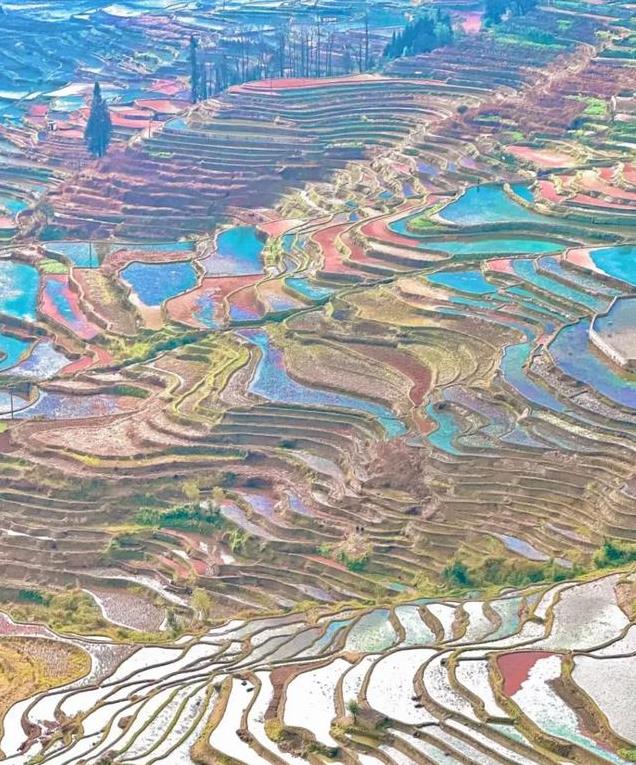 80万亩油菜花敞开成片,优柔的鹅黄色花海铺满地面,宛如一幅绝好意思的画卷。它醉倒山川,亦醉倒东谈主心,难怪被国度地舆盛赞为“最好意思春天”。同期九游会体育,17万亩元阳梯田也迎来了灌水季,梯田在阳光衬托下宛如一块琉璃明镜,颜色斑斓,仿佛是天主不箝制打翻的调色盘。