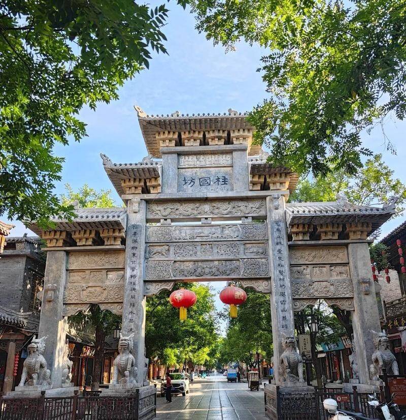 周村古商城为清代朔方生意重镇,大街为“旱船埠”主街,全长500米,两侧为明清商铺,保留“前店后坊”阵势。