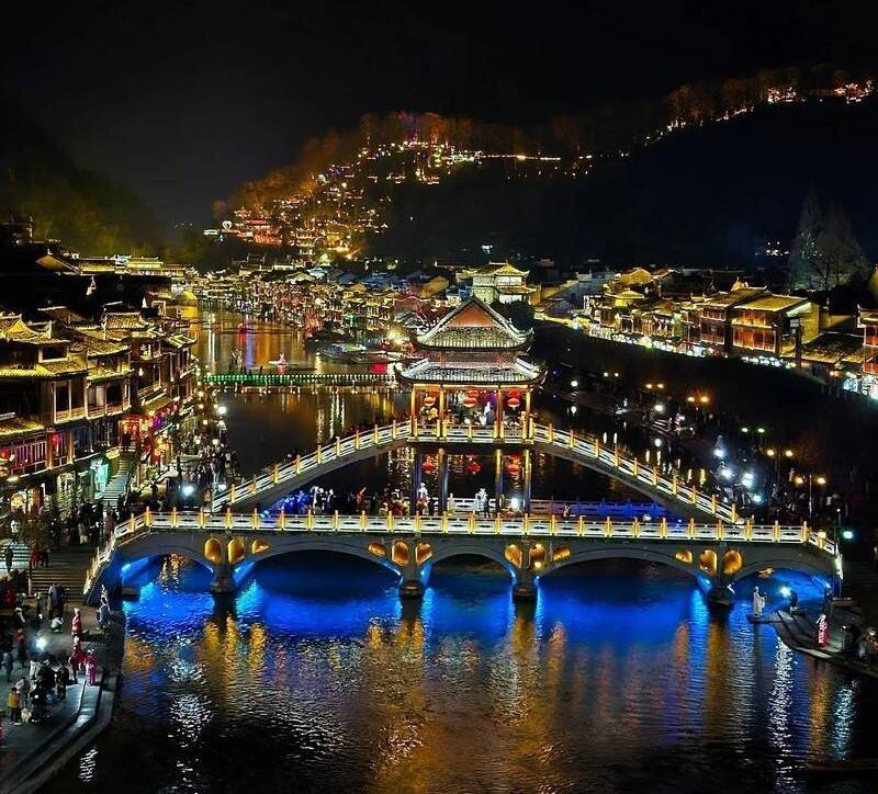 沱江夜游可览两岸灯火,虹桥、风雨桥横跨江面,苗族银饰与赶集文化持续于今。