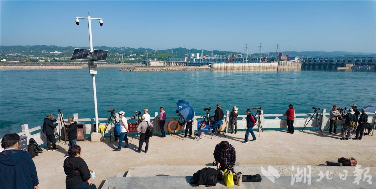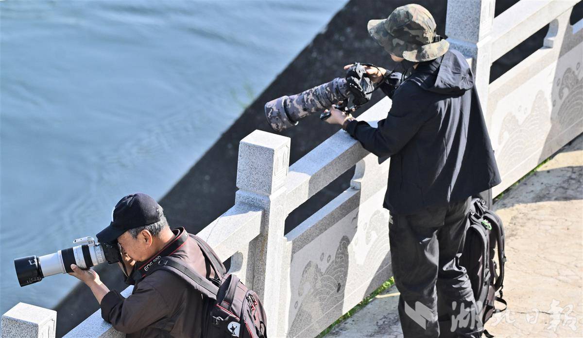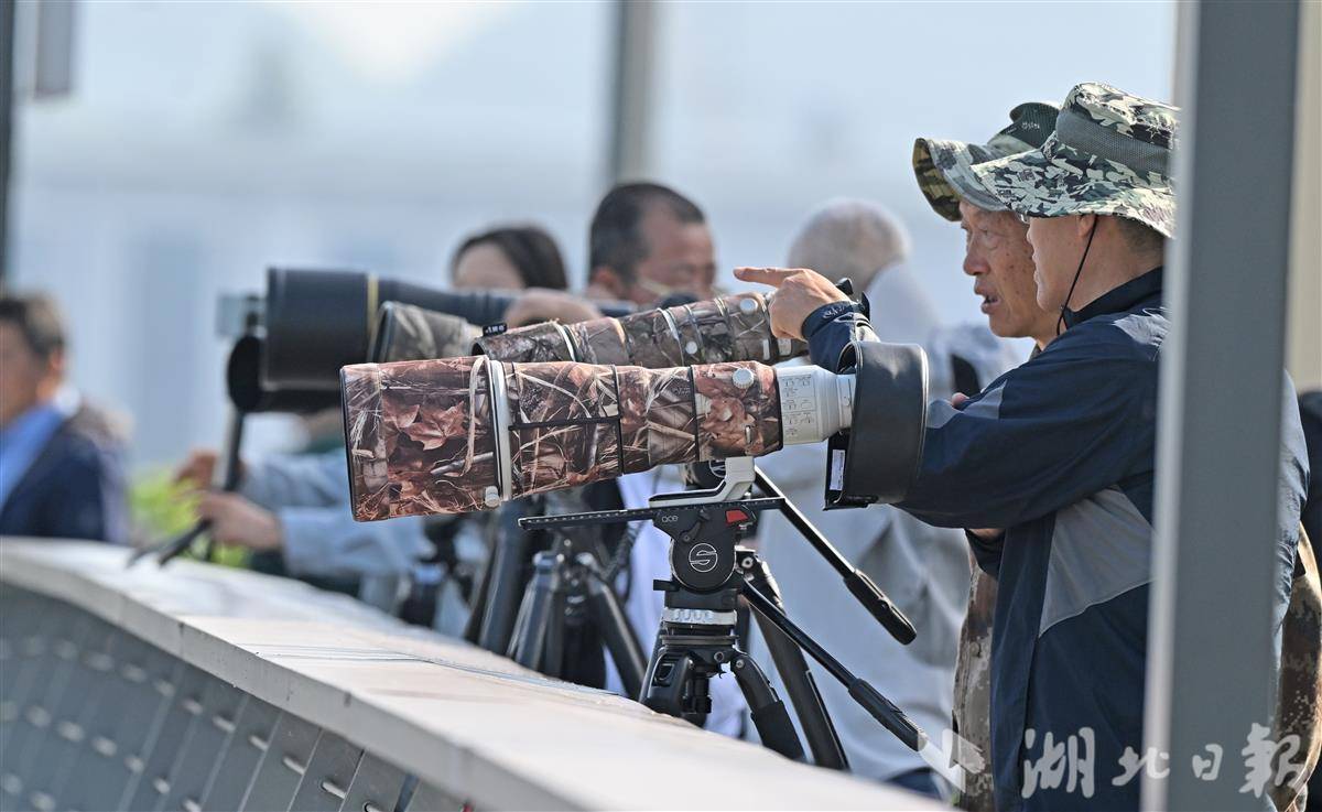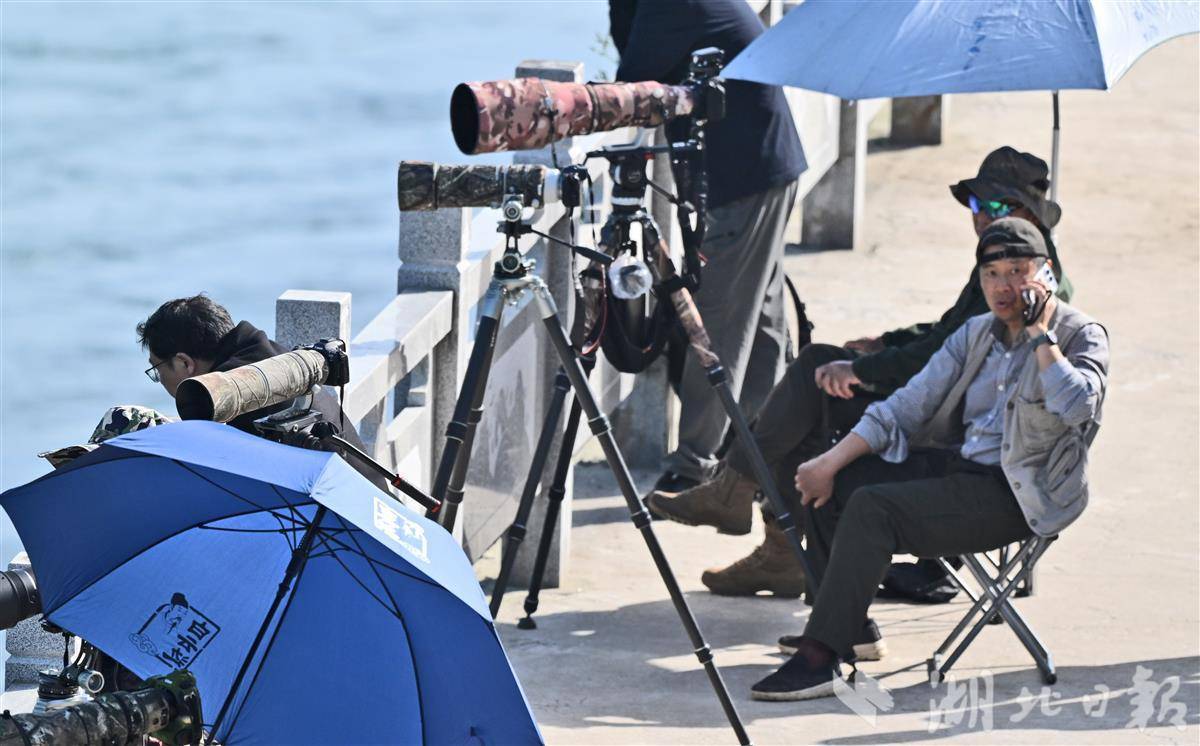 宜昌长江西坝大江游步谈旁,“蛇矛短炮”整王人排队,来自武汉、长沙等地的照相怜爱者们凝念念静候、屏气凝念念,眼神牢牢锁定江面,只为再见“含笑天神”江豚,定格它们跃出水面、逐浪嬉戏的灵动蓦然,每一份期待都藏在镜头的信守里。