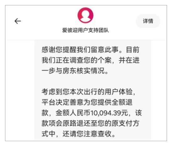 11月13日中午,流程不懈勉力,肖女士说,爱彼迎方面最终答理“善意为您提供全额退款”。