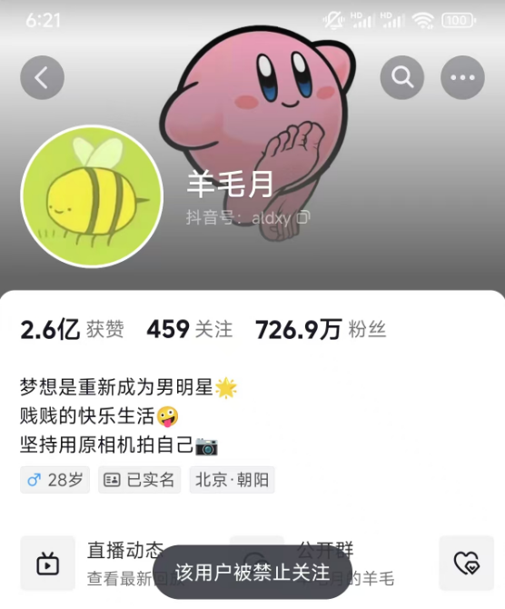 现在,羊毛月的抖音账号已被辞谢真贵,原因未知。