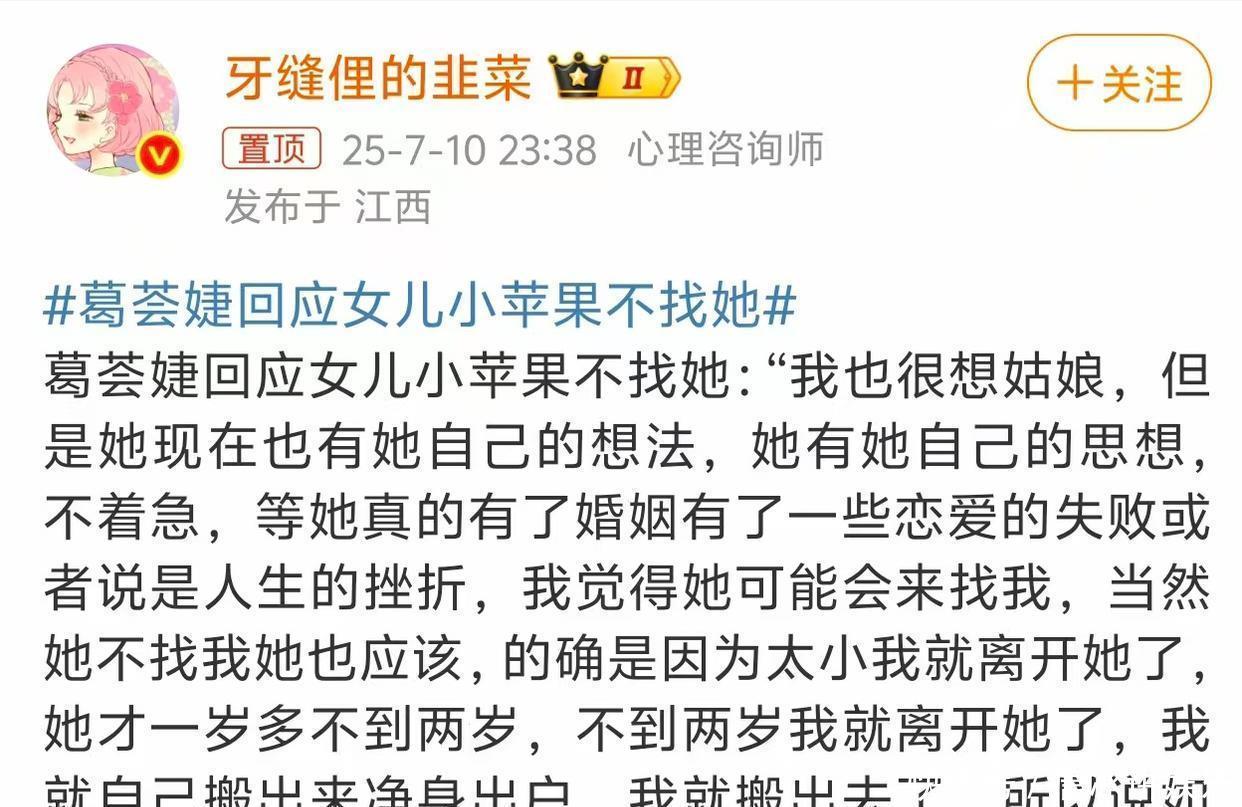 这两天葛荟婕在直播的时候提到小苹果于今皆不找她,不外她尊重小苹果的思法,认为如果将来小苹果遭受了贵重与失败可能会来找她,虽然不找她她也能采集,毕竟我方在小苹果不到两岁的时候就离开她了,小苹果对她有怨气是时常的。