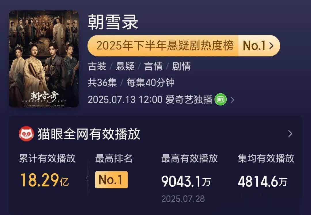 先容:这部暑期档上线的古装悬疑探案剧,是2025年暑期档最大的“黑马”,亦然网播剧年度冠军。全网有用播放量冲破18.29亿,稳居年度榜首。爱奇艺站内热度峰值破10000,置身“荣誉殿堂”。凭借塌实的探案剧情和李兰迪、敖瑞鹏的“双强”CP感,这部剧不仅在国内霸榜,更强势登顶国际13国热度榜,实至名归的爆款。