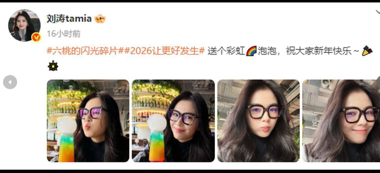 1日,刘涛在酬酢平台上晒贸易好意思照,并配文称:“送个彩虹泡泡,祝各人新年昌盛~”刘涛嘟嘴卖萌,青娥心满满。刘涛晒带着玄色的眼镜,一稔玄色毛衣,搭配西服,知性又优雅了,自拍好意思照心情好!刘涛戴着大框眼镜拍照,文艺范儿透顶。刘涛嘟嘴自拍好可人!刘涛的五官精致,好意思貌养眼。