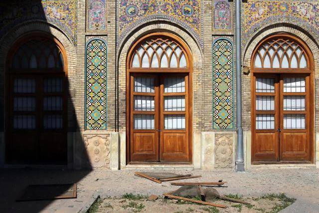这是3月3日在伊朗都门德黑兰拍摄的受损的古莱斯坦宫。近日,位于伊朗都门德黑兰的聚合国教科文组织世界遗产地古莱斯坦宫(又称“玫瑰宫”)在空袭中受到爆炸冲击波影响而受损。新华社发