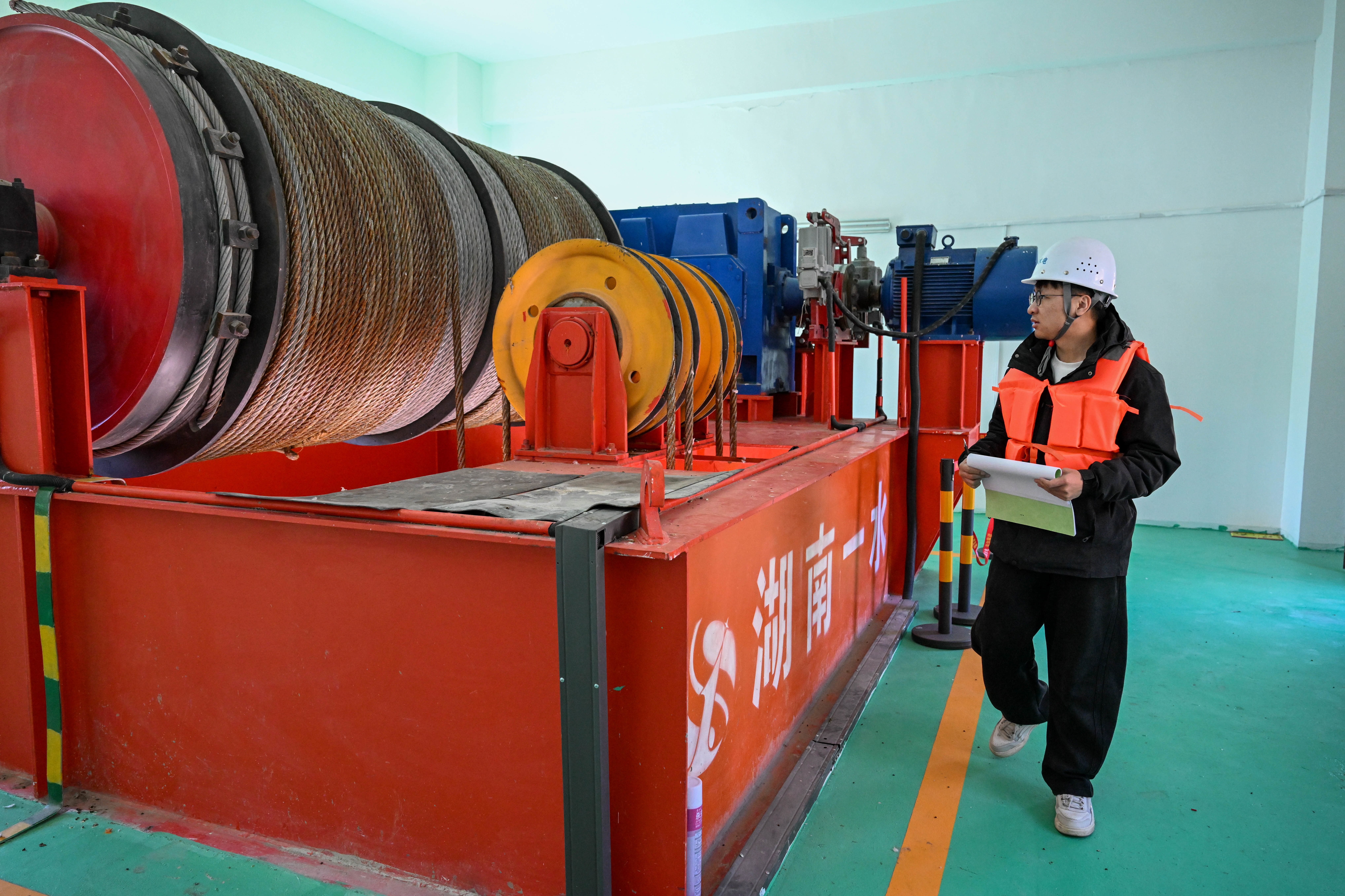 运管东谈主员在新疆伊犁哈萨克自治州新源县恰普河水利重要泄洪洞锻练闸室旁观(3月27日摄)。新华社记者 丁磊 摄