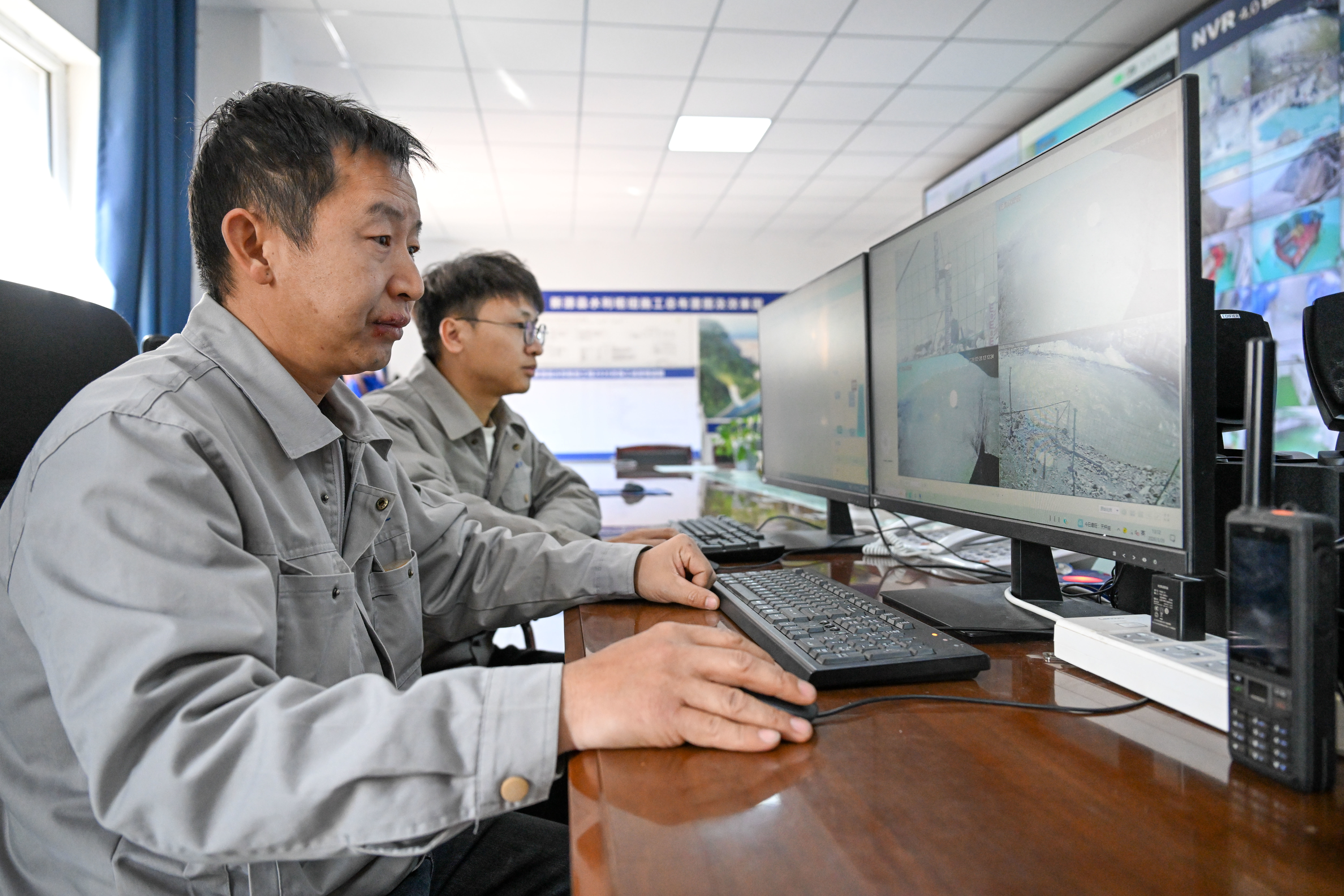 运管东谈主员在新疆伊犁哈萨克自治州新源县恰普河水利重要转机室稽查各点位监控(3月27日摄)。新华社记者 丁磊 摄