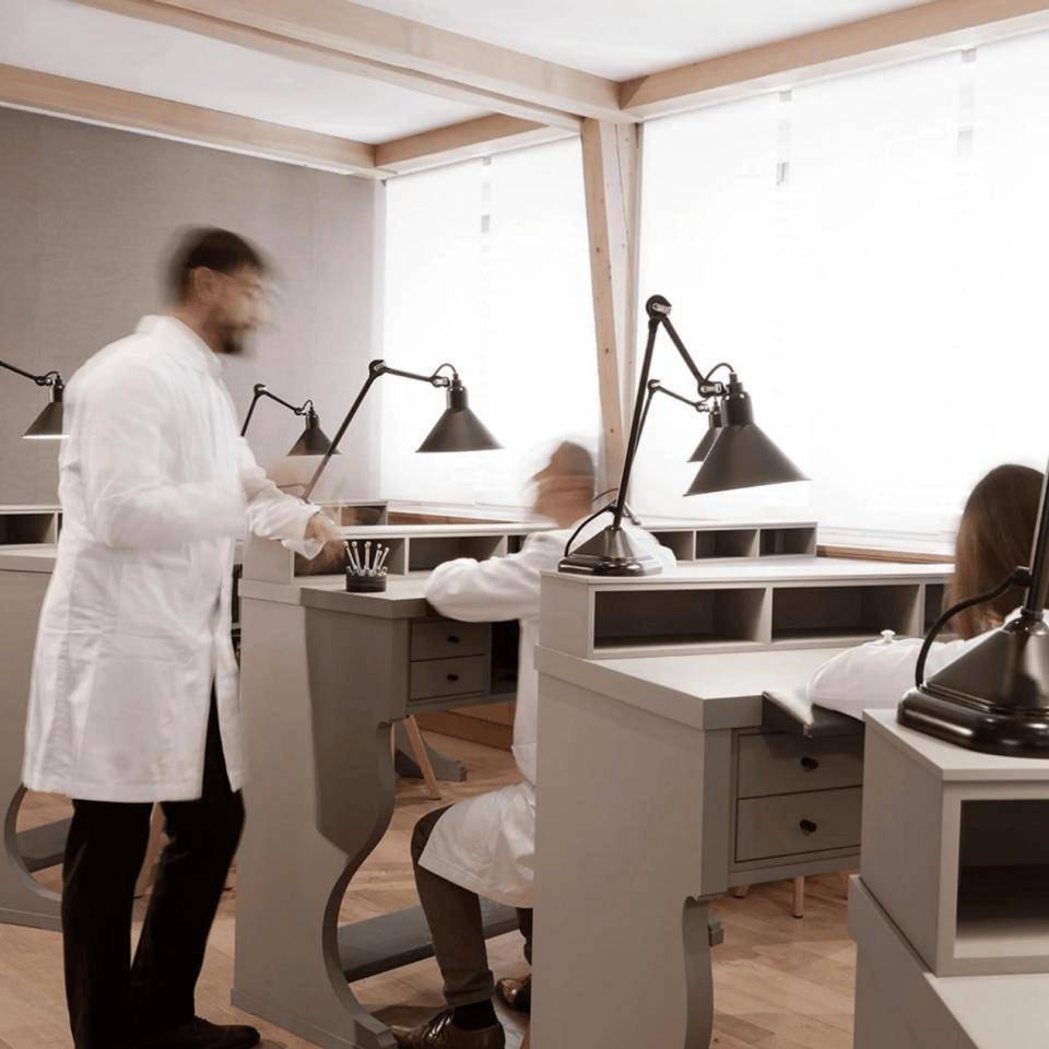 彼时,制表师们在晦暗的烛光下职责,金属表桥的反射光每每会严重烦躁他们的视野,致使变成眼部疲惫。