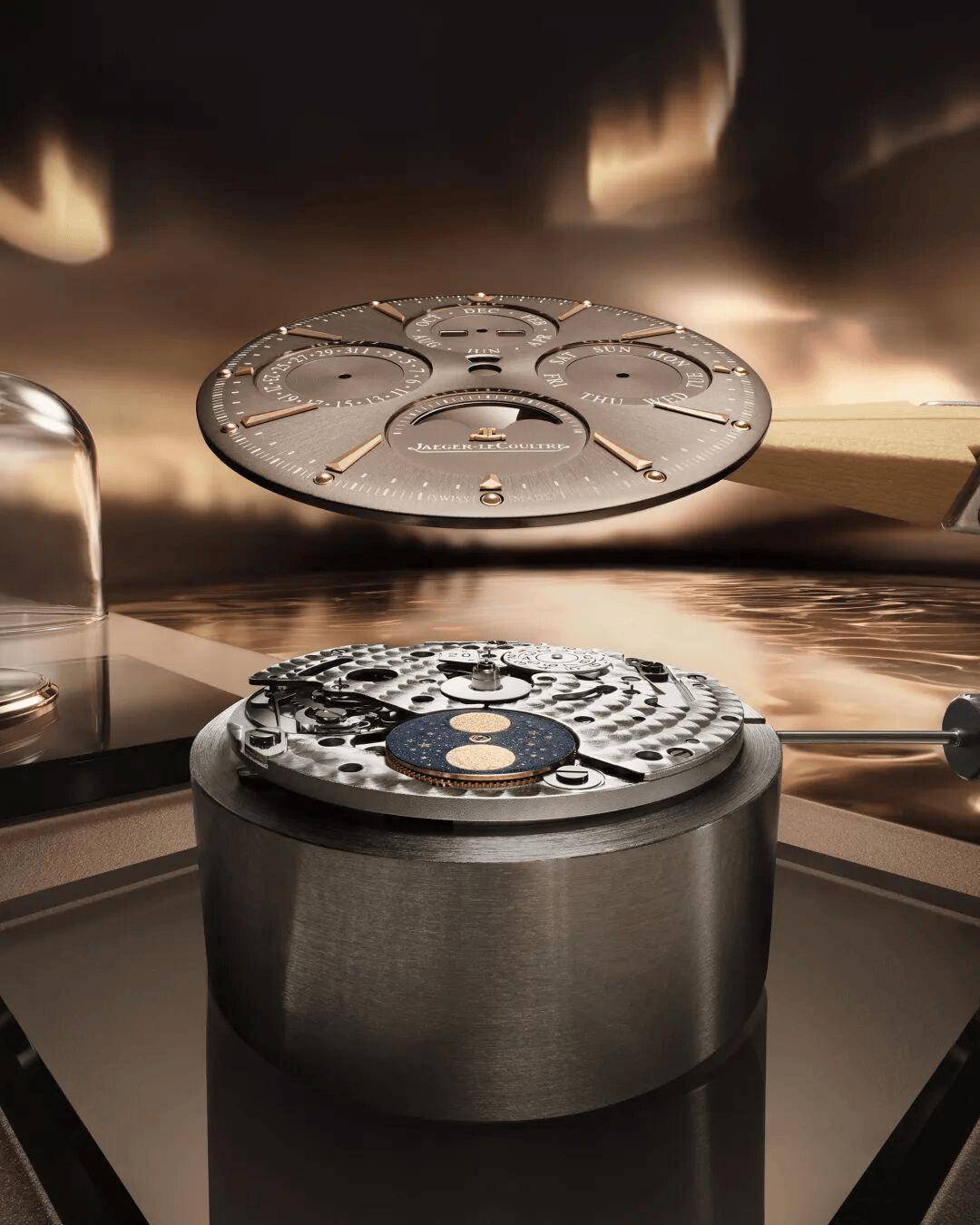当你翻转 Master Control Chronometre群众系列天文台手表的表盘,透过蓝宝石水晶底盖,你会看到一个微缩的艺术寰宇。