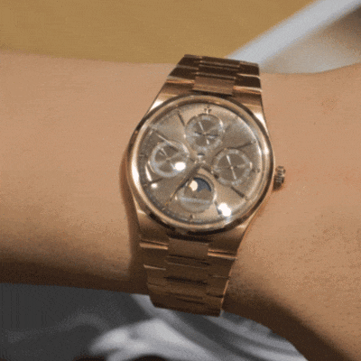 表壳与表链完满了视觉上的无缝连系,从表壳最宽处当然延迟,线条极其盛开。这不仅是为了排场,更是为了减小阻力,让它能轻巧地滑入任何根究的袖口。