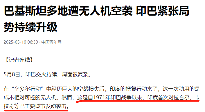 现如今,印度开启了自1971年印巴干戈以来,对这些主要城市的初度首要,可见印巴花样的垂危流程。